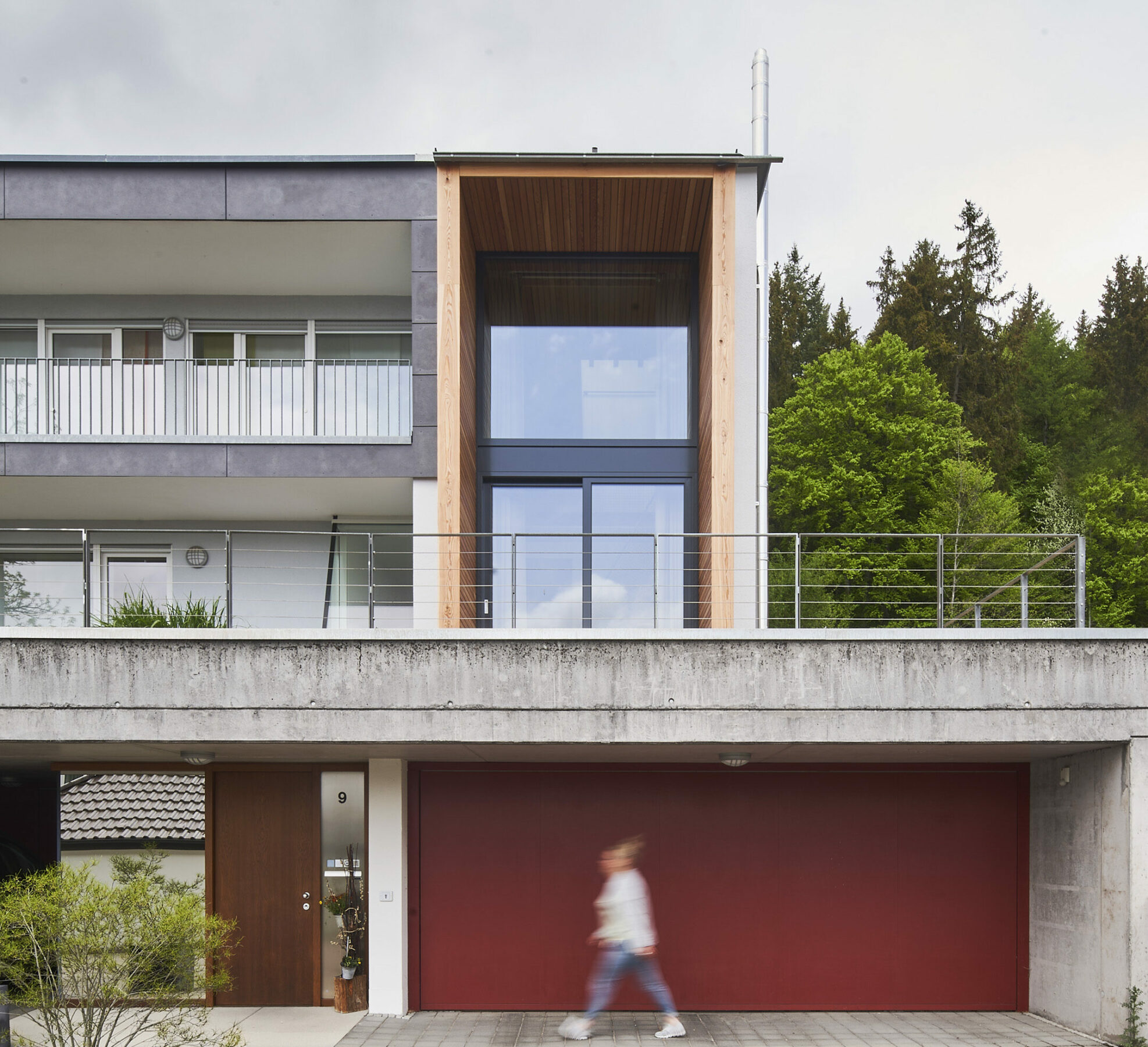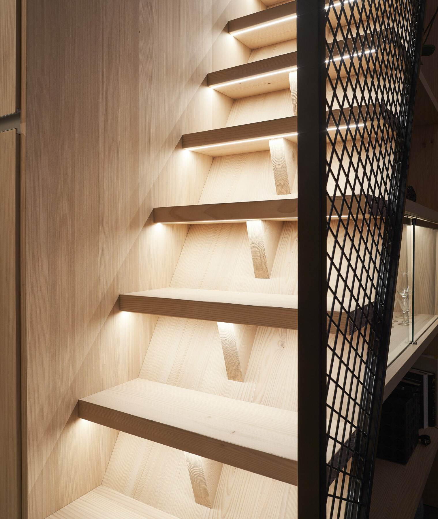 We accompanied the family in these considerations and found the perfect solution: a narrow extension in wooden post-and-beam construction, which – thanks to the light monopitch roof – appears harmoniously integrated into the existing building, but with its partly wooden façade of horizontal larch boarding looks like an independent house. However, one looks in vain for an entrance here. Since the guest house is reserved exclusively for family and friends, all visitors are welcomed in the main building. Inside, the transition from old to new is seamless.