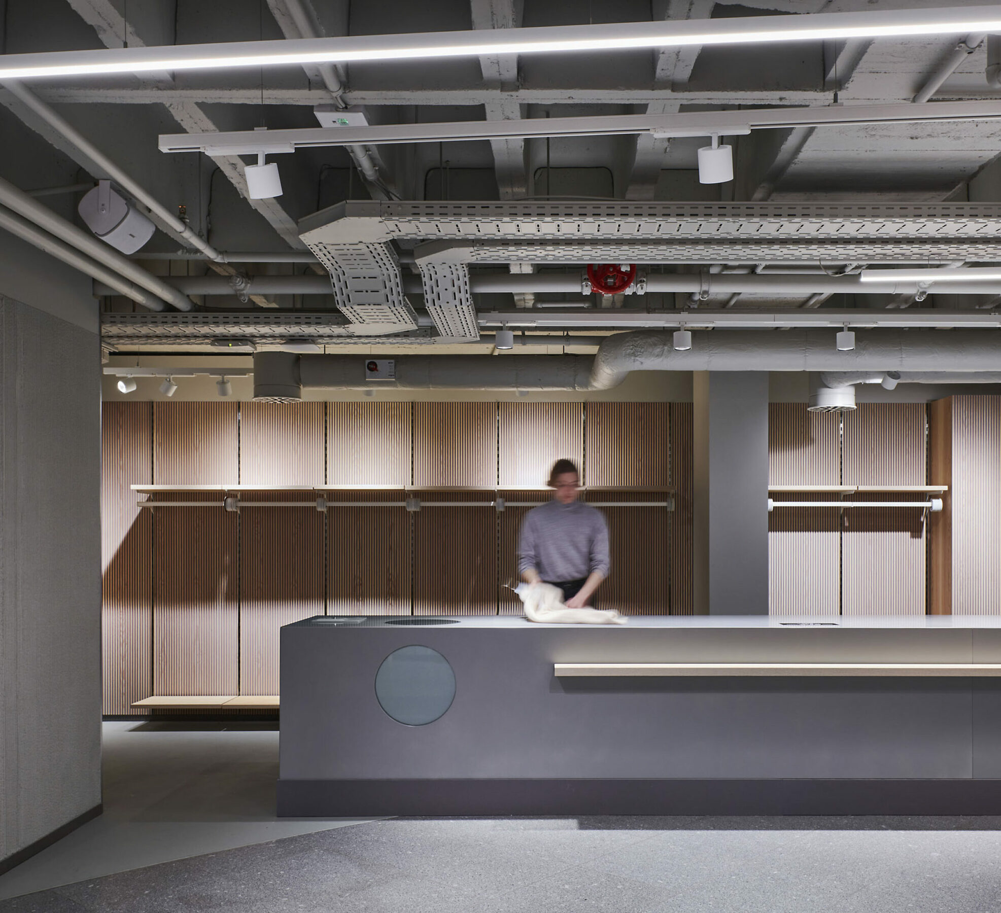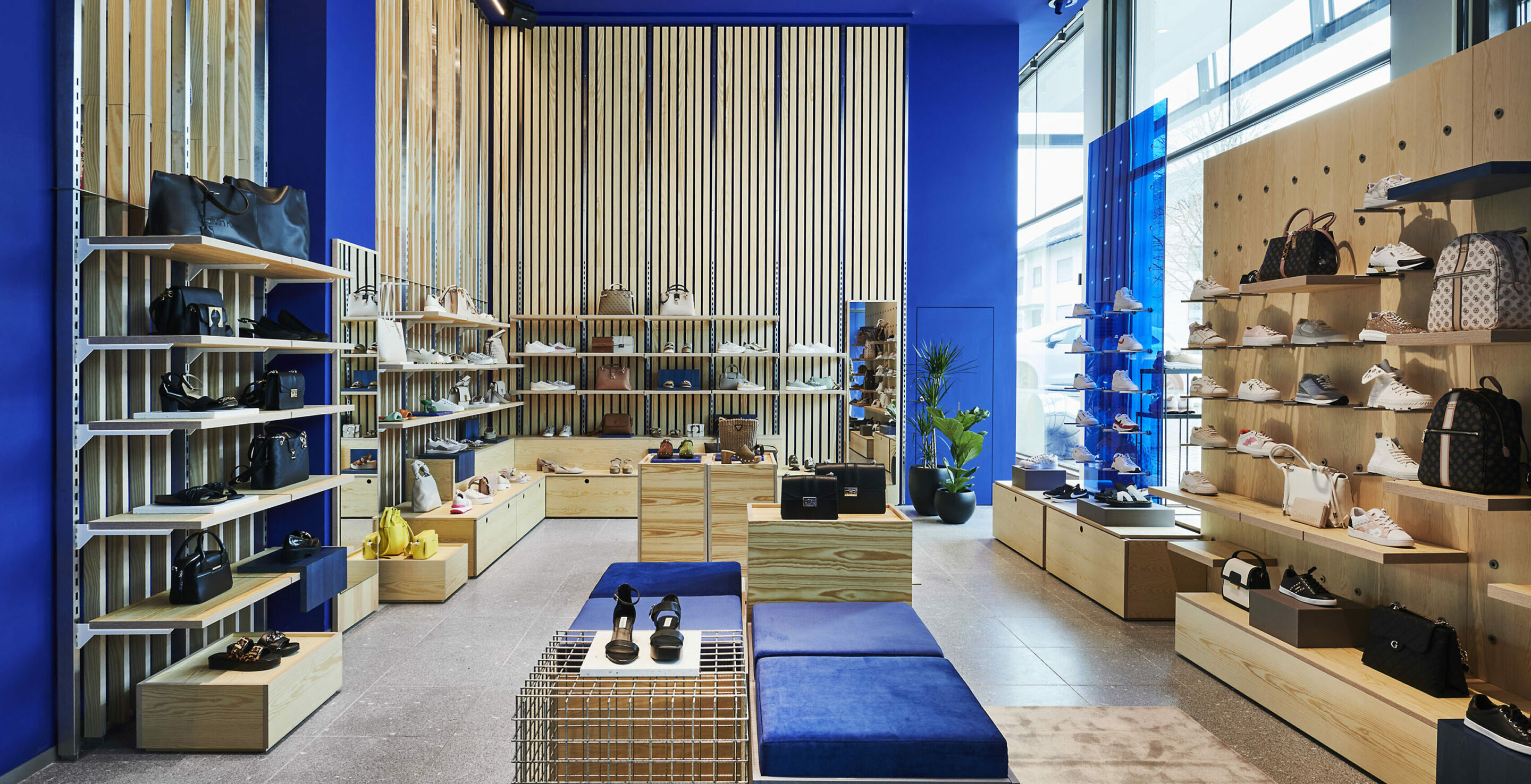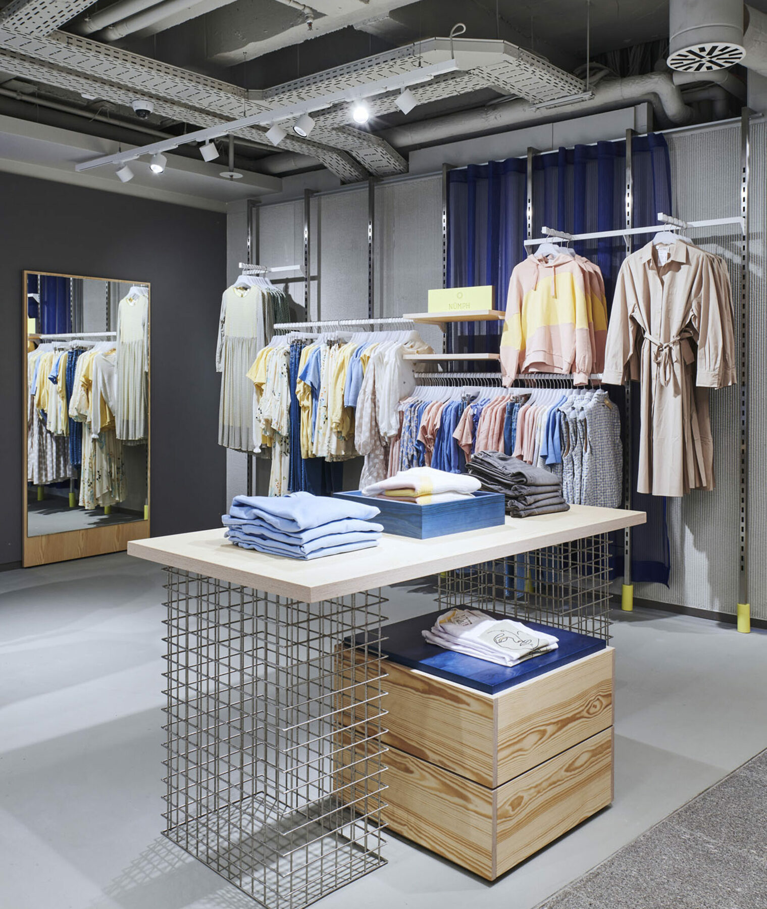 Garhammer’s young fashion department is well dosed in everything and keeps a precise balance between the playful lightheartedness of the moment and the respectful vision of the big picture. An attitude that the young clientele lives like no other, and that can be found in the carefully chosen details. In particular, the accessory trays made from recycled PET bottles and the lattice boxes made from untreated stainless steel on the jeans shelf.