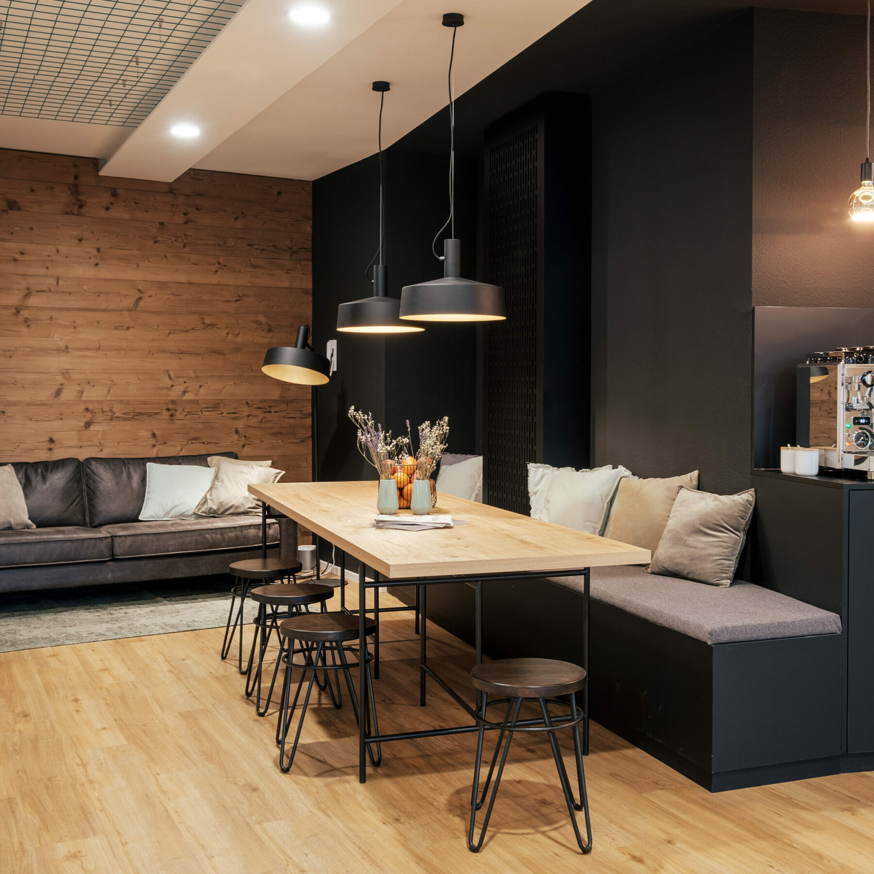 Damit die Arbeitsumgebung einen guten Job macht, schaffen wir Orte, an denen die Identität des Unternehmens spürbar wird. Die nicht nur Sinn, sondern auch Freude machen. Wo man abliefern, aber auch auftanken kann. Dabei stehen immer der Mensch und das Unternehmen im Mittelpunkt. Wofür steht ihr, was macht euch besonders und was brauchen eure Leute, um einen hervorragenden Job zu machen? Die Antworten erarbeiten wir gemeinsam und verwandeln sie anschließend in Räume, die eure Werte, eure Kultur, eure Mission bei jedem Handgriff, jedem Projekt, an jedem Arbeitstag erlebbar machen.