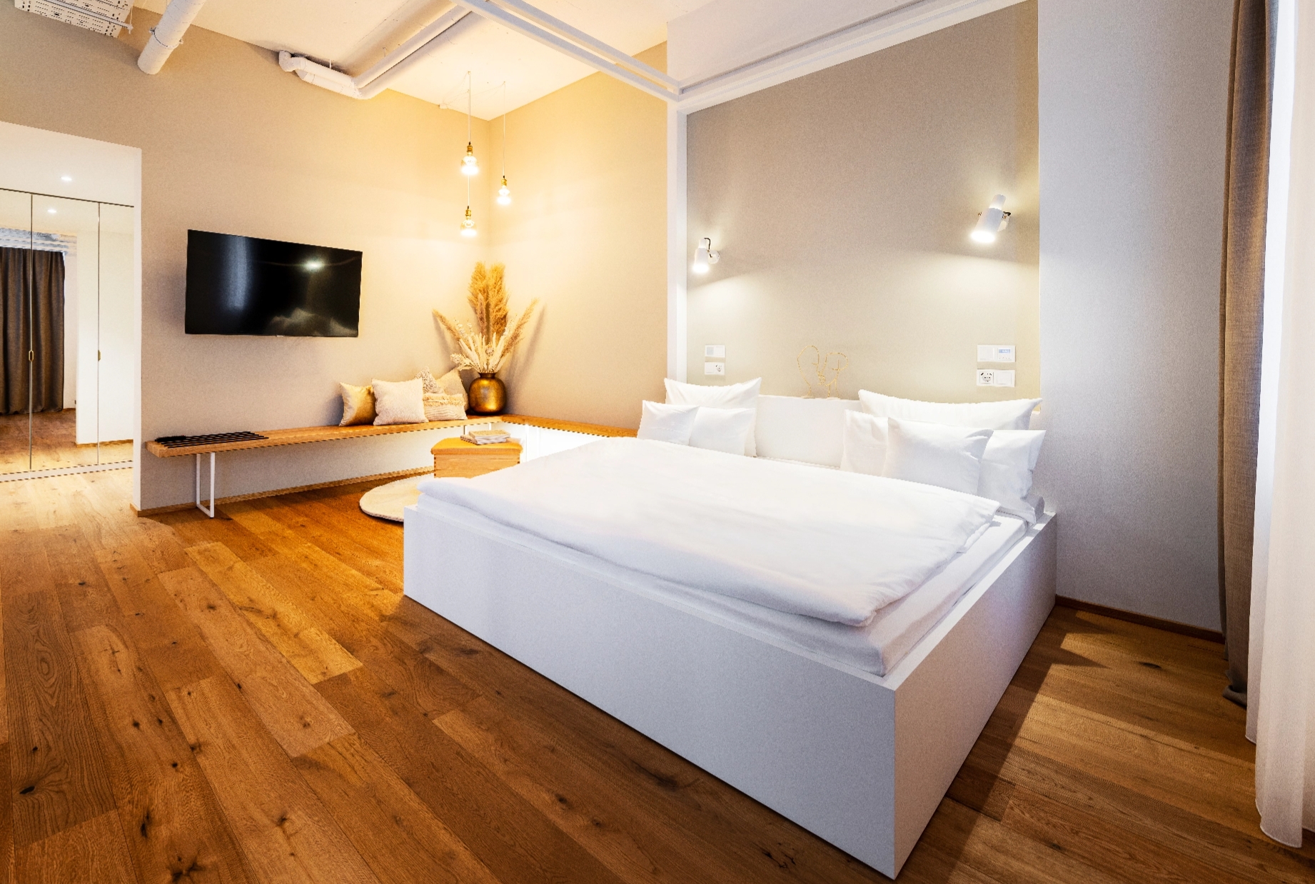 Hotelzimmer kann man entwerfen, skizzieren und planen. Wir glauben: Ein Hotelzimmer muss man erleben. Schließlich geht es in der Regel nicht nur um einen Raum. Sondern um hunderte. Es geht darum, den Raum so zu planen, dass sich die Gäste in jedem Moment voll und ganz wohlfühlen. Eine Erfahrung, die man nicht auf dem Papier machen kann. Aber in unserem Musterzimmer, das wir in unserer Manufaktur in Originalgröße aufbauen. Zum Begehen und Anfassen, zum Probeliegen, zum Erleben.