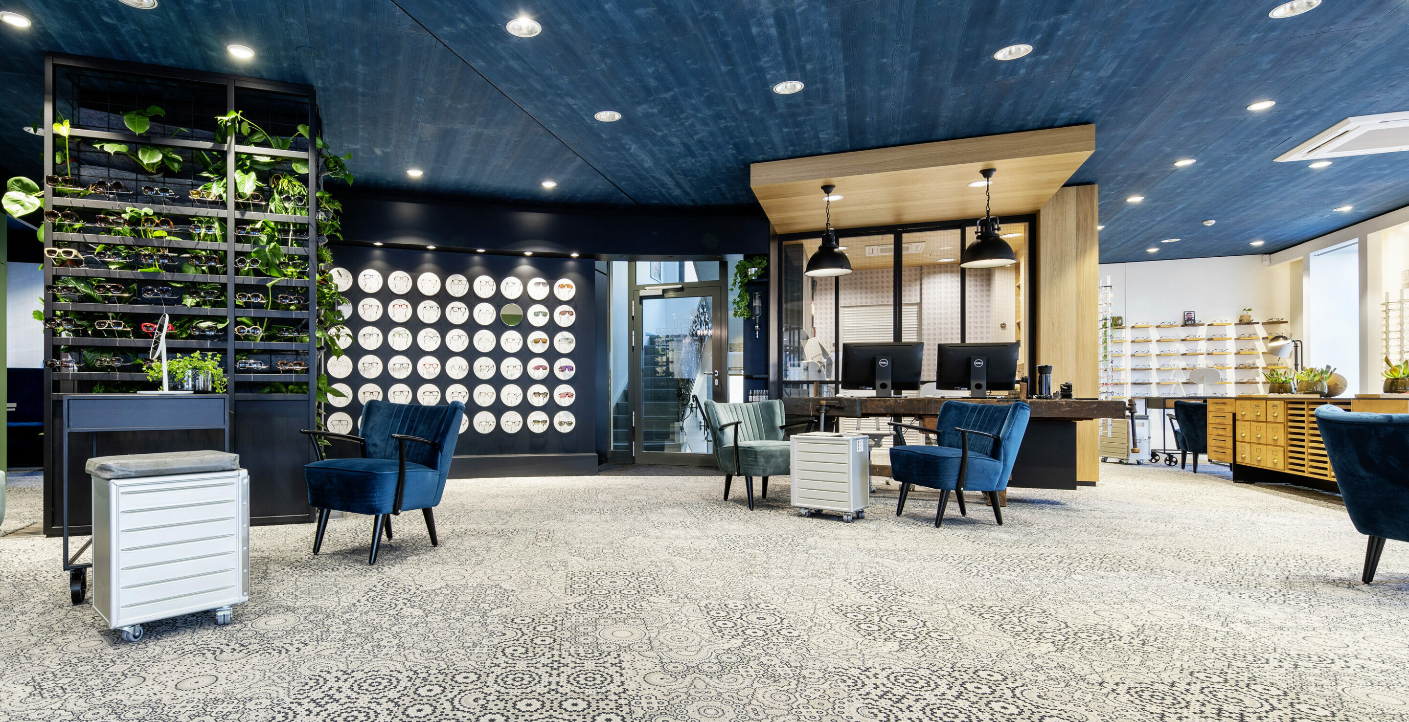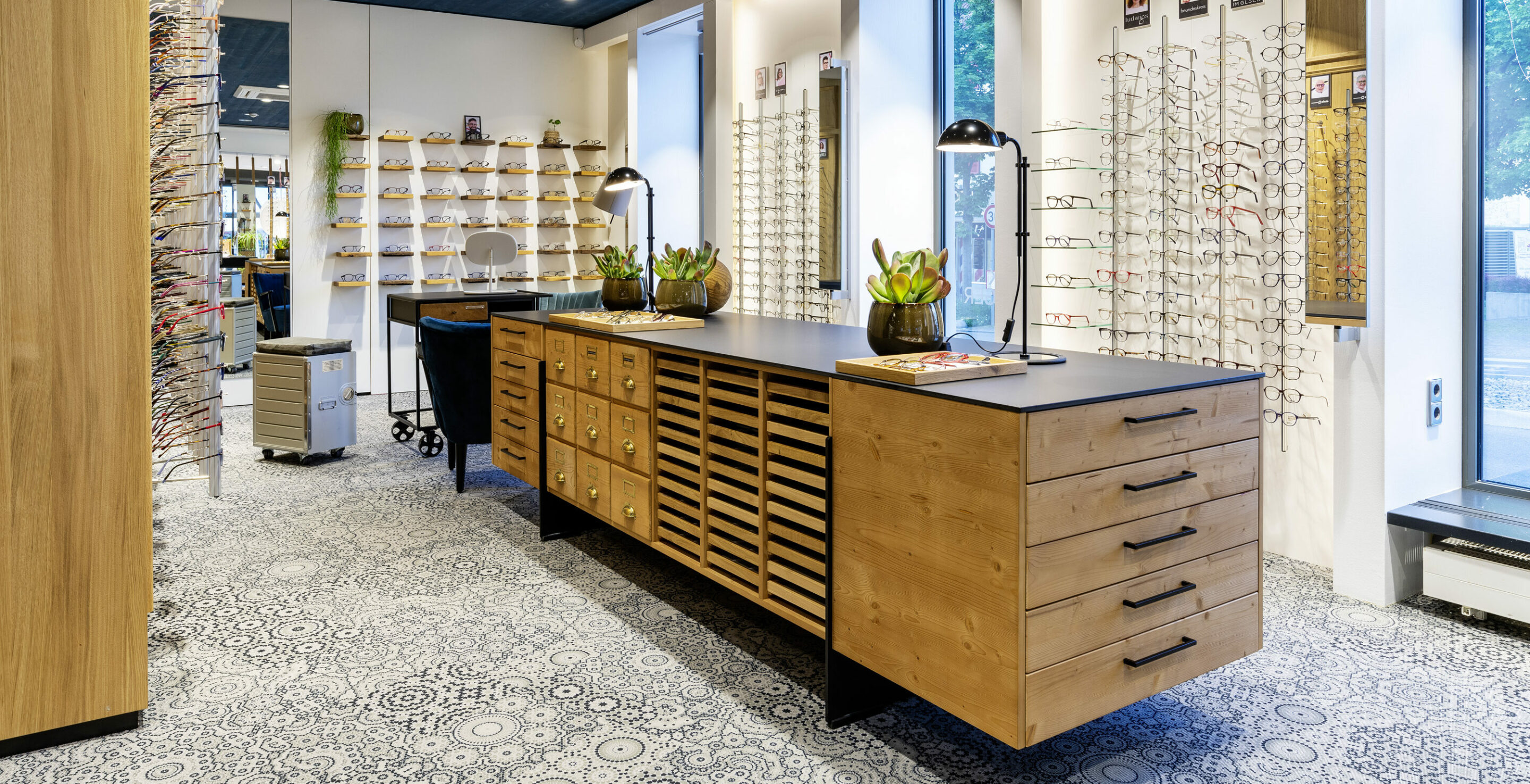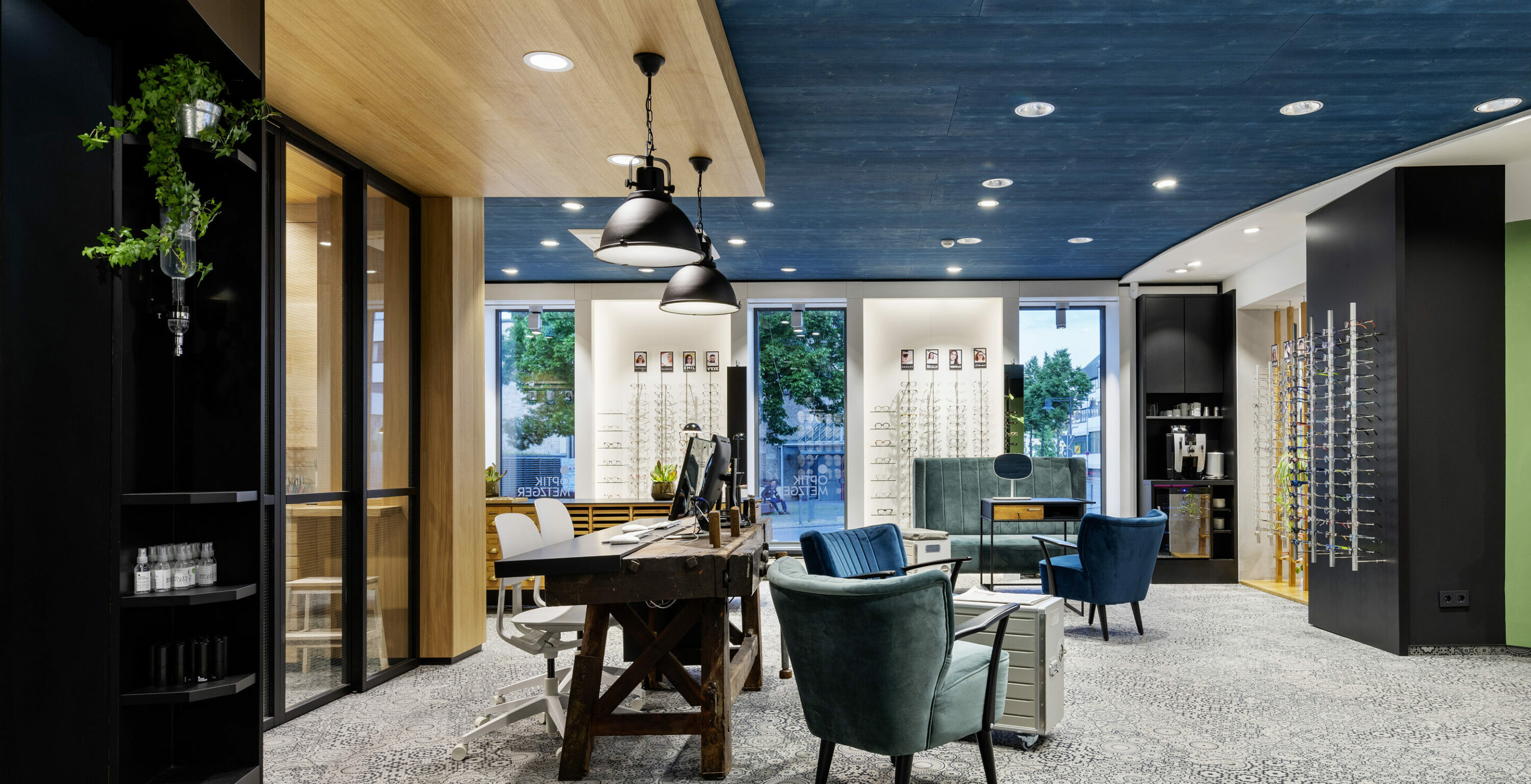 Ein Raum, in dem sich alles ums Sehen dreht und Ästhetik an vorderster Stelle steht: Genau das ist mit dem Umbau von Optik Metzger in Balingen gelungen. Innerhalb von nur zwei Wochen wurde der komplette Umbau realisiert – Boden, Decke, Licht, Lüftung, Schreinermöbel und Co.. Im Mittelpunkt des Designkonzepts steht die Geschichtsträchtigkeit des Unternehmens. Seit 125 Jahren werden hier in vierter Generation Brillen verkauft und in eigener Handarbeit hergestellt.