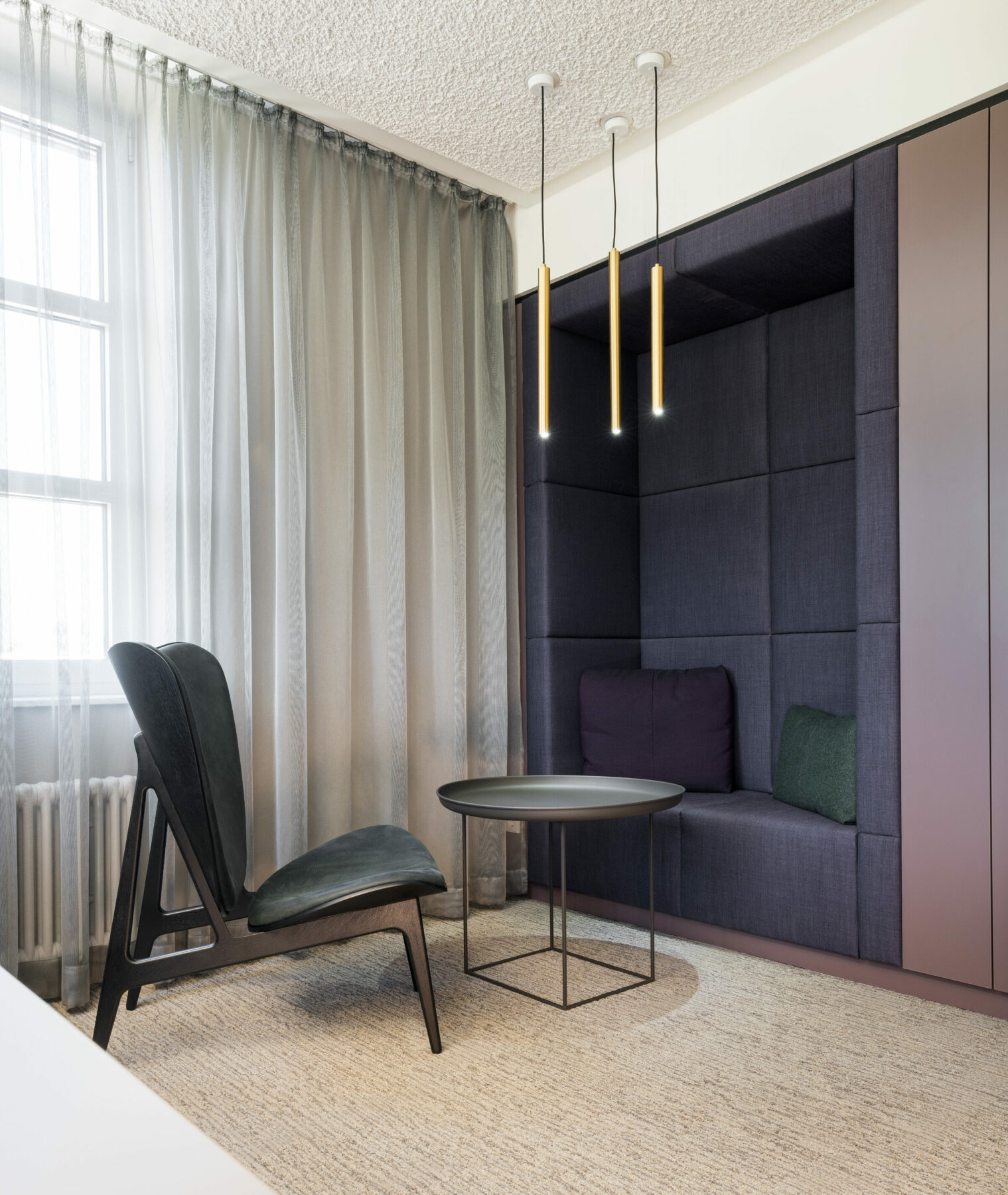 Unser Job war es, das Design von Ippolito Fleitz zuverlässig umzusetzen. Als Generalunternehmer haben wir die ganze Baustelle gewuppt, den Innenausbau gestemmt sowie die Möbel bemustert und aus unserem Laden geliefert. Und zwar von Arper, Buzzispace, Hay, Kristalia, Norr11, Vitra.